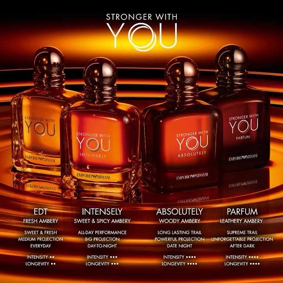 Stronger With You Parfum es una fragancia masculina moderna, sofisticada y envolvente de la icónica línea de Stronger With You de Giorgio Armani, lanzada como una versión mas profunda y refinada dentro de la familia de aromas